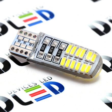 Автомобильная светодиодная лампа T10 - W5W - 24 SMD 7014 с керамическим корпусом. Отличный вариант для установки в подсветку салона или багажника, фонари габаритных огней, стоп-сигналы. Такие лампы отличаются высокой виброустойчивостью и нагреваются значительно меньше обычных. Установить их можно как в специализированных автосервисах, так и самостоятельно.